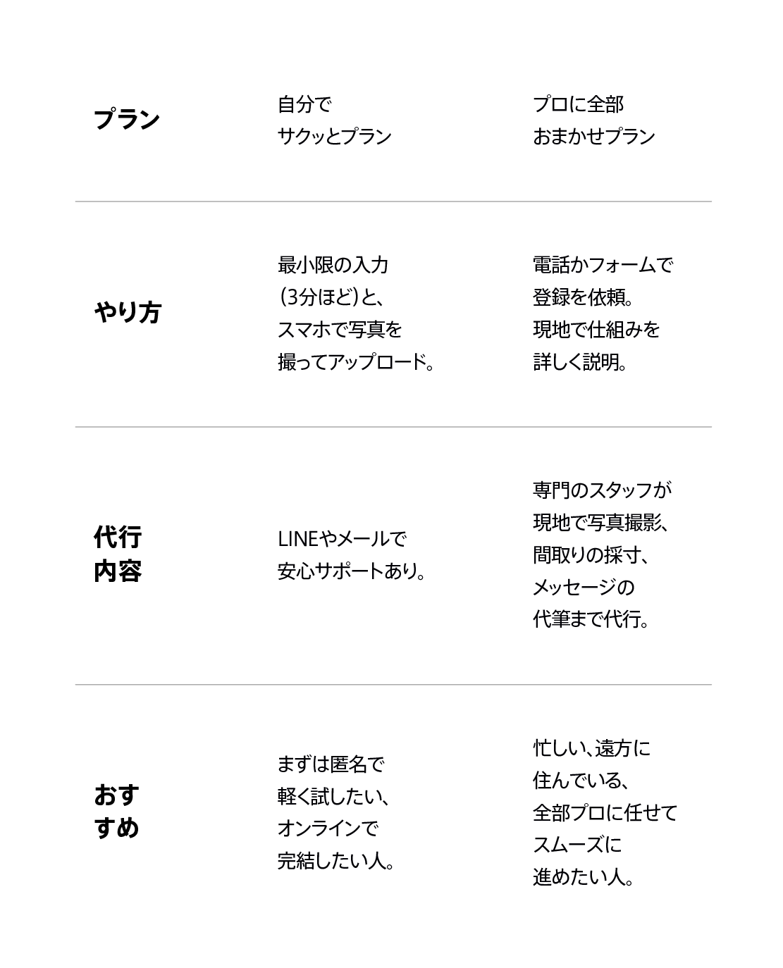 間取りの採寸、メッセージの代筆まで代行。